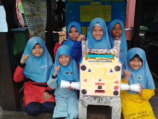 Berikut dikongsikan gambar anak-anak bersama robot kumpulan masing-masing.